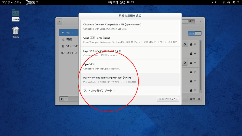 Fedora20をVPNクライアントとして別ネットワークへVPN接続する設定は、GUIでとても簡単だった。しかしちょっとした設定で接続ができなくてしばらく悩んでしまったので、その備忘録。