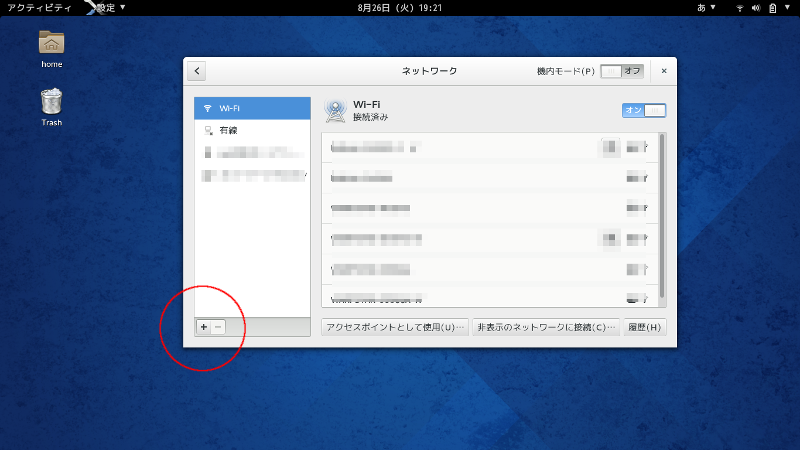 新たにネットワーク接続を追加するので、ウィンドウ左下の+ボタンを押す。