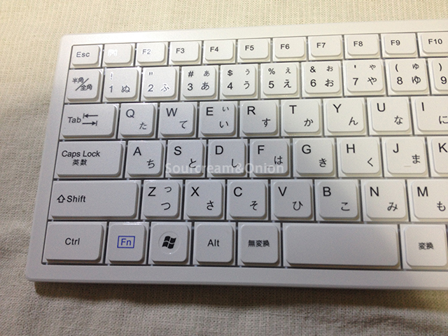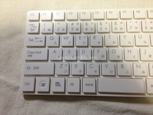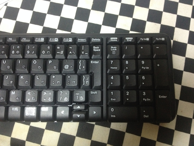 上の画像を合わせて見てもらうと分かるかと思うが、左右端のキーが犠牲になってしまっていて、特にBackSpaceやEnter、半角/全角キーなども入力しづらくなってしまっている。また細かい事だがNumLockのインジケータなども無いので、キーボード側でNumLockが効いているのかどうか確認ができない。