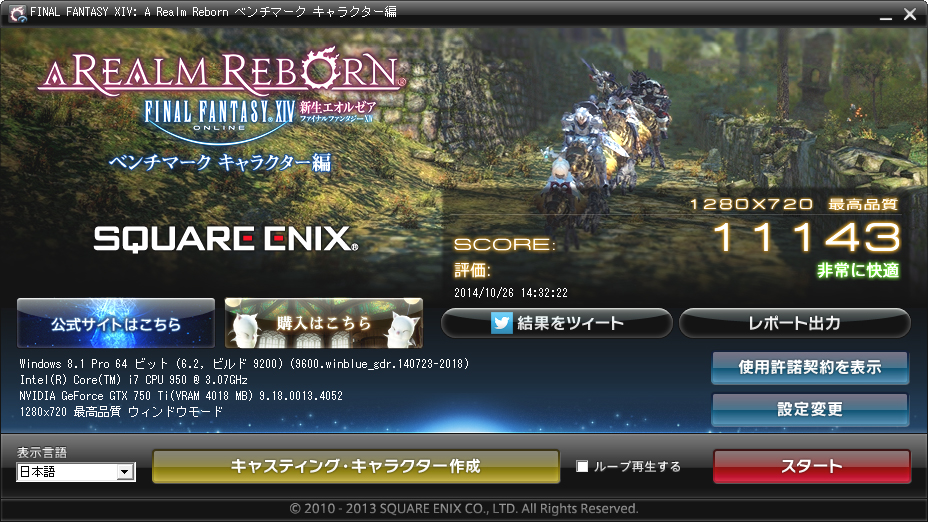 ・FF XIV BENCHMARK キャラクター編 - GF-GTX750Ti-E2GHD/OC