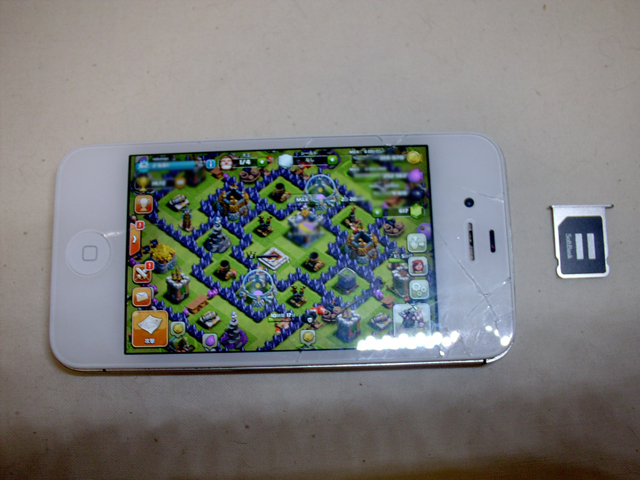 SIMを外しても、wi-fiが有効であればゲームで遊ぶこともできる。もしiPhone6に買い替えても、4Sはクラクラ専用機に出来るので、それだけでもパネルを交換する意味はあるのだ(多分、より大きな画面で遊びたくなるだろうけど)。
