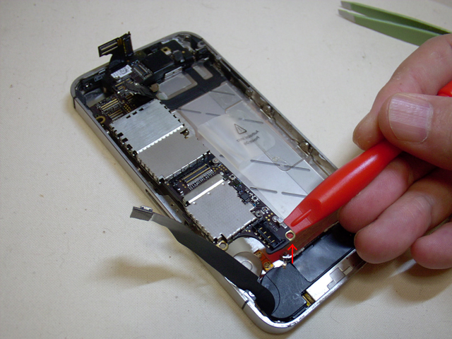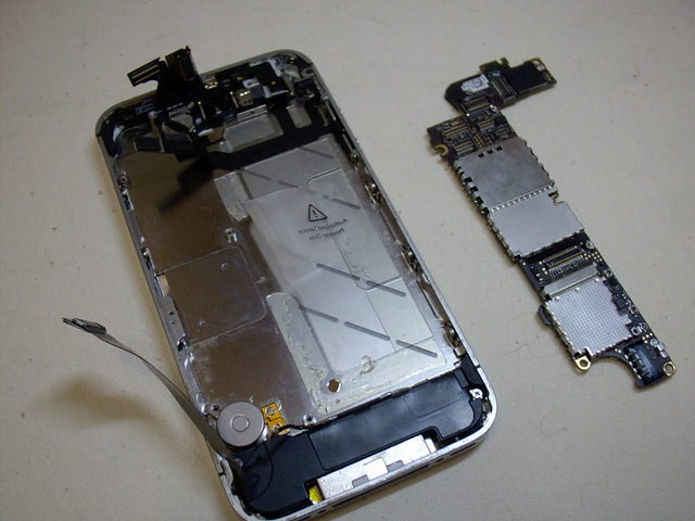 メインボードは、上部にコネクタが集合しているので、一つづつ取り外していく。またカメラも取り外す。この辺りの細かな手順は分解工房に詳しく説明されているので、そちらを見てもらった方が分かりやすくてよいだろう。