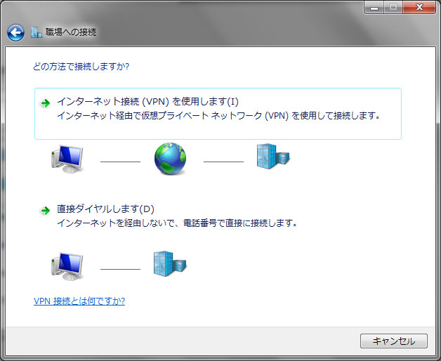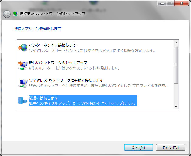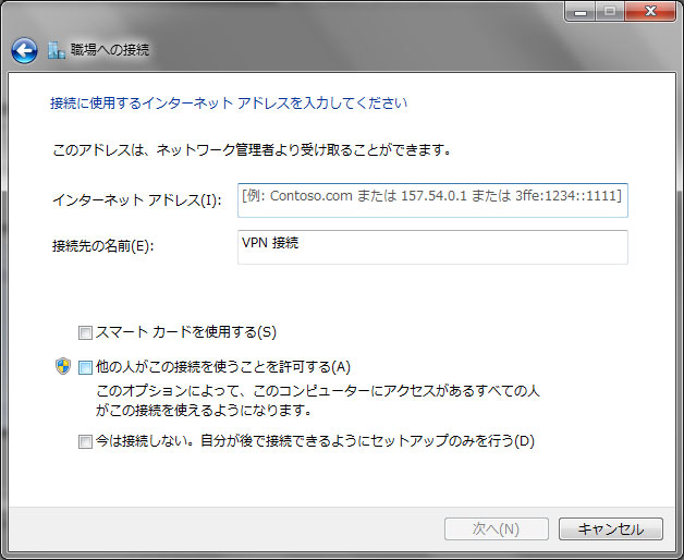 VR-S1000の各設定は出来たので、今度はクライアント側のVPN接続設定を行う。ここではWindows7を例に設定を進めていくが、Windows8/8.1やOS X、スマホなどのVPN設定の方法はネット上に数多く紹介されているので、それらの情報を参考に設定すればよいだろう。