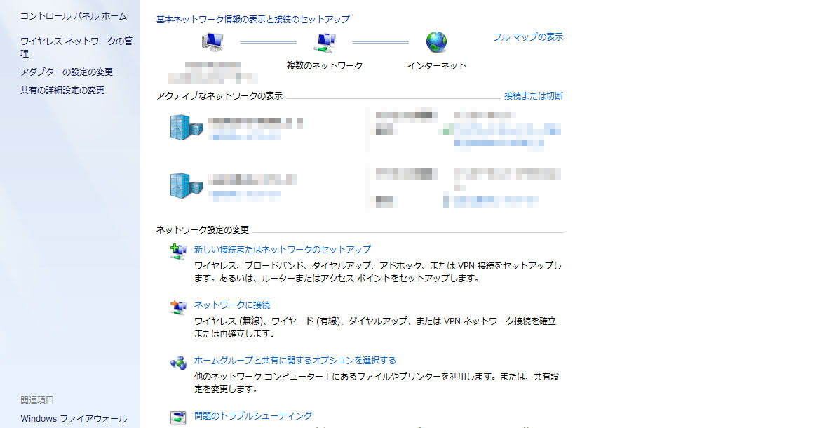 ここからはL2TP/IPsecで接続出来るように設定を変更する。ネットワークと共有センターを再度開いて、左側の「アダプターの設定の変更」を開く。